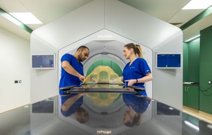 Our typical day begins by carrying out the daily quality assurance of the treatment machines, ensuring that they are functioning correctly before treatment begins. Once completed, we bring patients in for their treatment. We position the patients on the bed, ensure they are comfortable, and then we step out of the room to deliver the treatment and monitor the patient. Once the treatment session is completed, we bring the patient out and check how they are feeling and if they have experienced any side effects since their last session. On the day of their treatment, patients may also meet with our nursing team, the dietician, or patient coordinator, who help to manage any side effects, provide nutritional advice, and help with appointment scheduling and any other queries.