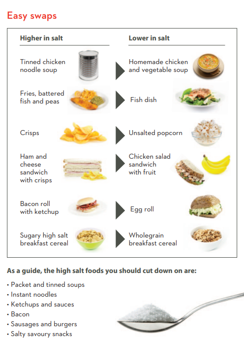 The Irish Heart Foundation’s website has more great tips to help cut down on salt, and to reduce the risk of heart disease and stroke. Below is a guide to everyday swaps we can easily make day-to-day, tips for salt reduction when eating out and a handy food shopping card to help determine which items have a healthy amount of salt.