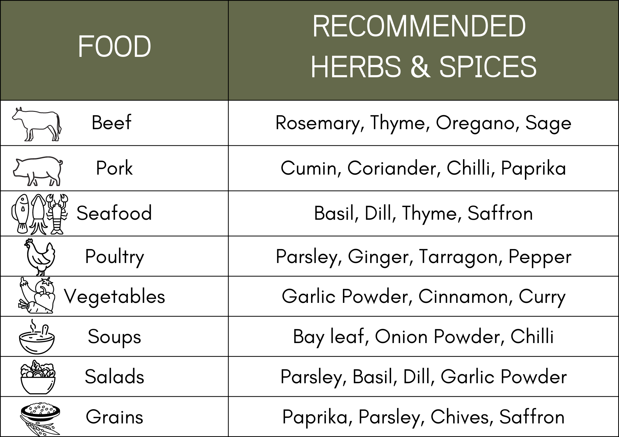 The table below shows some clever ways to skip the salt and add some exciting new herbs and spices to food.