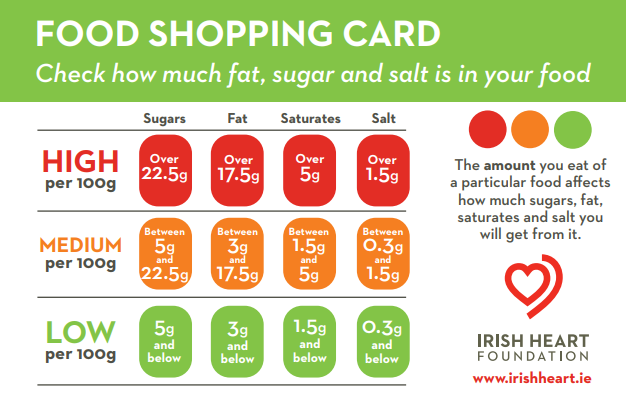 Irish Heart Foundation Food Shopping Card can be found here.