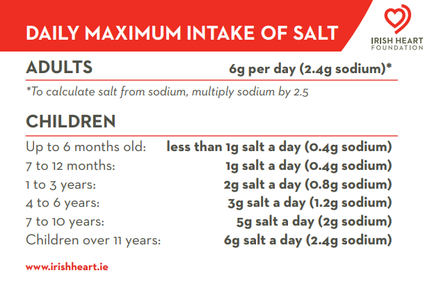 Irish Heart Foundation Cut Down on Salt Publication can be found here.